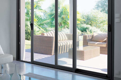 Pour optimiser l'apport lumineux dans les pièces, préférez nos baies vitrées avec profils ultra fins pour libérer le maximum de surface vitrée.